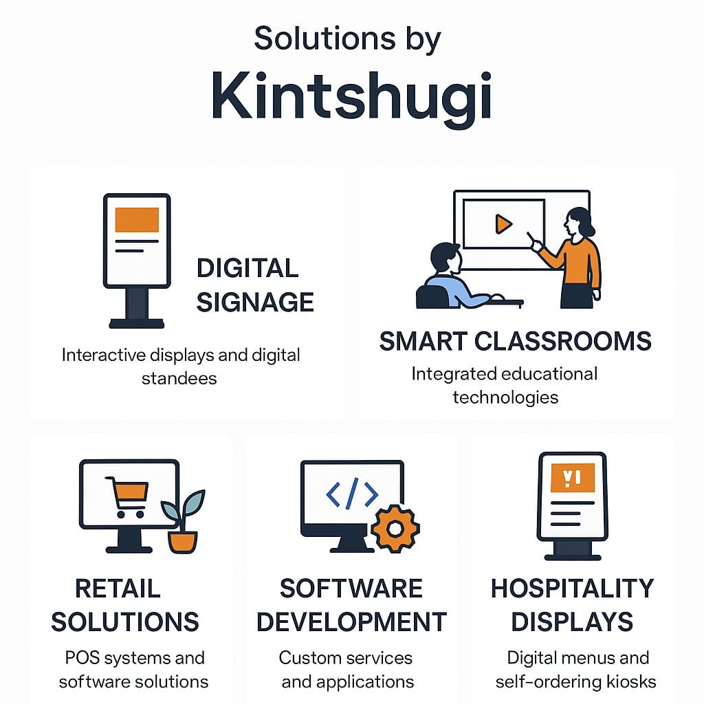 At Kintshugi, we empower businesses to operate smarter and faster. From digital displays to custom software solutions, we help you streamline operations, enhance customer engagement, and unlock growth — all with the power of innovation.:.